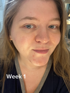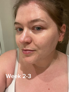 • When I started I think my skin was in a really bad place, the temperatures had just started dropping and my skin was getting extremely dry all the time and in the pictures you can see some spots and scars that I was dealing with. I would say by 2 going into 3 I started noticing changes in my skin. Just more brightness, the spots were slowly fading.