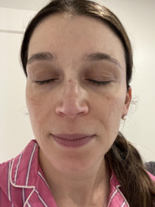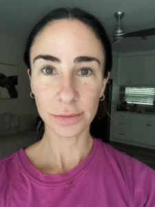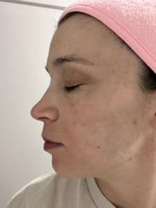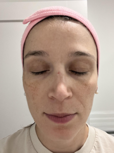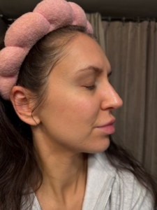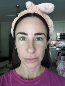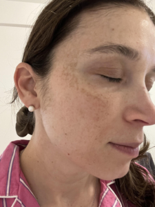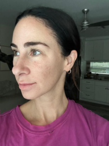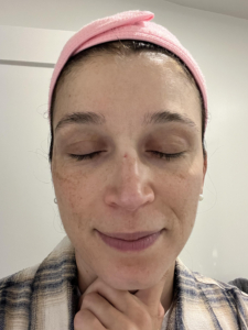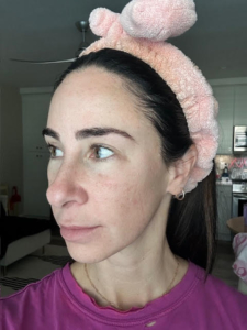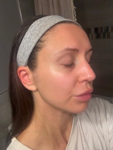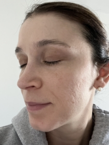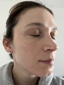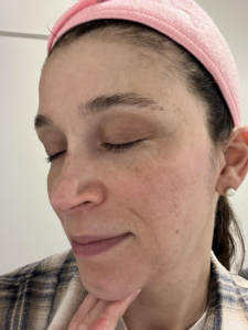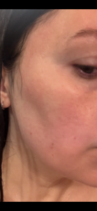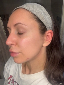I struggle with some dark spots, texture, and roughness on my cheeks. I use a lot of products, including Korean Beauty and various masks, but I have an almost KP like roughness on lower jaw that only goes away with a microdermabrasion for a few days. In picture, I also started off with dullness on my cheeks. The ingredients of the Saint Jane petal cream include Vitamin C and Hyaluronic Acid, and flower botanicals which gives it the name ‘petal cream’ which I have not tried or seen something on the market like it before.