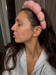I definitely started to see a little difference in my skin. It’s definitely clearing up the red dots that I had at the beginning of the month. I also feel very hydrated and my skin is really reacting well to this product.