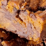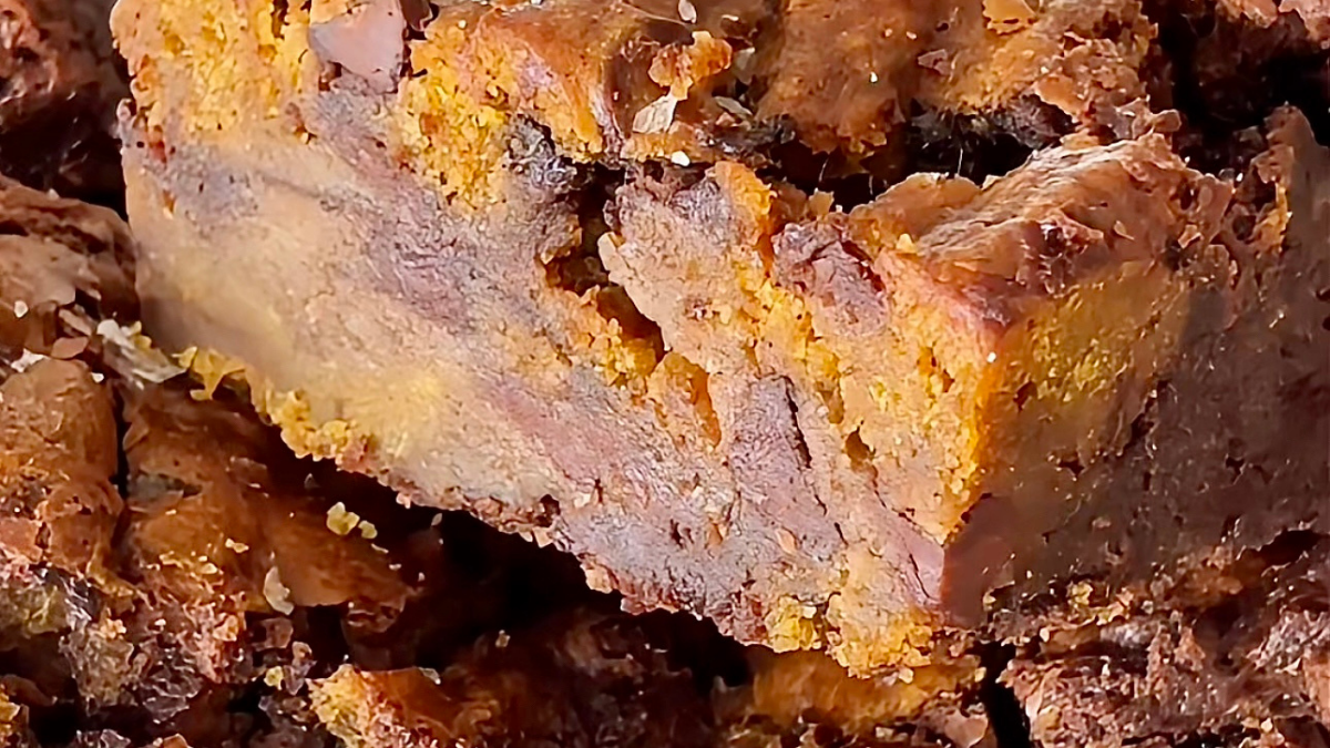 - Scoop layers into pan, alternating pumpkin + brownie until all used up.