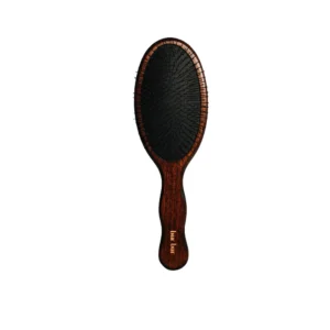 The nylon bristles gently work through knots while the boar bristles distribute natural oils from the scalp along the hair shaft, helping reduce frizz and enhance shine.